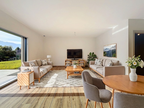 Grâce à leur orientation soigneusement pensée et à leur disposition astucieuse, les villas bénéficieront d'une luminosité optimale et d'une vue imprenable sur les majestueuses montagnes environnantes. Le design moderne et les espaces bien aménagés de ces somptueuses villas de 5,5 pièces garantissent un confort absolu. De plus, vous aurez la possibilité de personnaliser les finitions selon vos préférences.